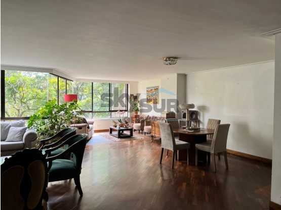 Área 208m2, 3 alcobas, baño en todas las alcobas, closet, 1 baño auxiliar, alcoba de servicio con baño, cocina integral, red de gas, zona de ropas, sala, comedor, estudio, tres parqueaderos uno solo y dos lineales y cuarto útil.